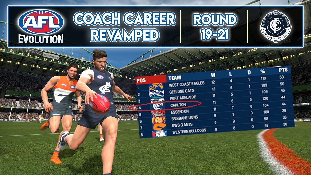 Our Carlton Career Mode continues today with a chance to solidify a position inside the top four. A few losses could see us drop to a position that might see us fall outside the eight. It's all up for grabs! ⬇More Below⬇