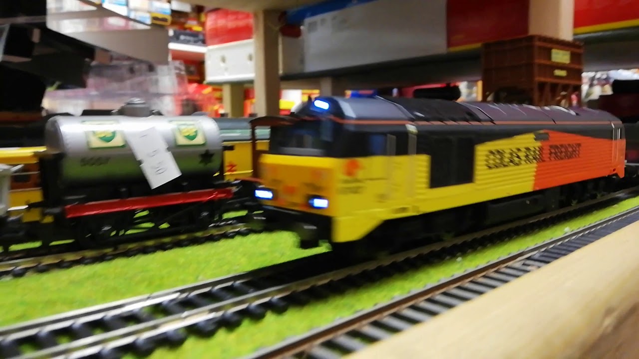 The magnificent Hattons RHTT on the test track at The Locoshed Whitefield in Manchester. Up first we see Ex Ews class 66207 top and tailed with Euro Cargo Rail 66029 followed by the Colas twins 67027 Charlotte and 66023 Stella, this is the weathered RHTT version a superb representation of this working.